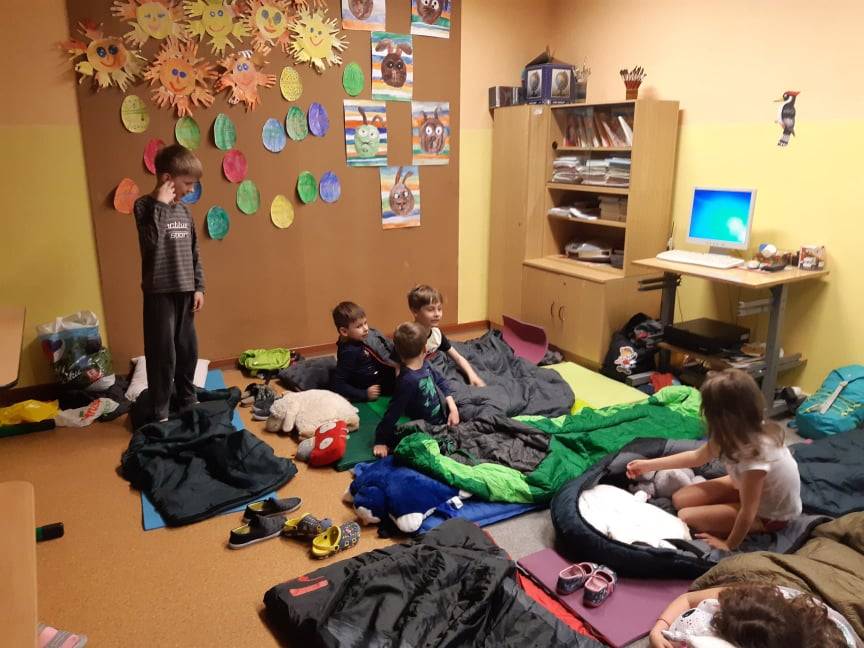 Sešli jsme se v pět hodin odpoledne, děti si rozložily spací pytle a hurá na pohádku od H. Ch. Andersena. Popovídali jsme si o jeho životě a poznávali jsme podle obrázků jeho pohádky. Pak děti plnily různé úkoly na téma H. Ch Andersen. Následovala večeře a pak zase pohádky. Usínali jsme nadšení z nových zážitků.