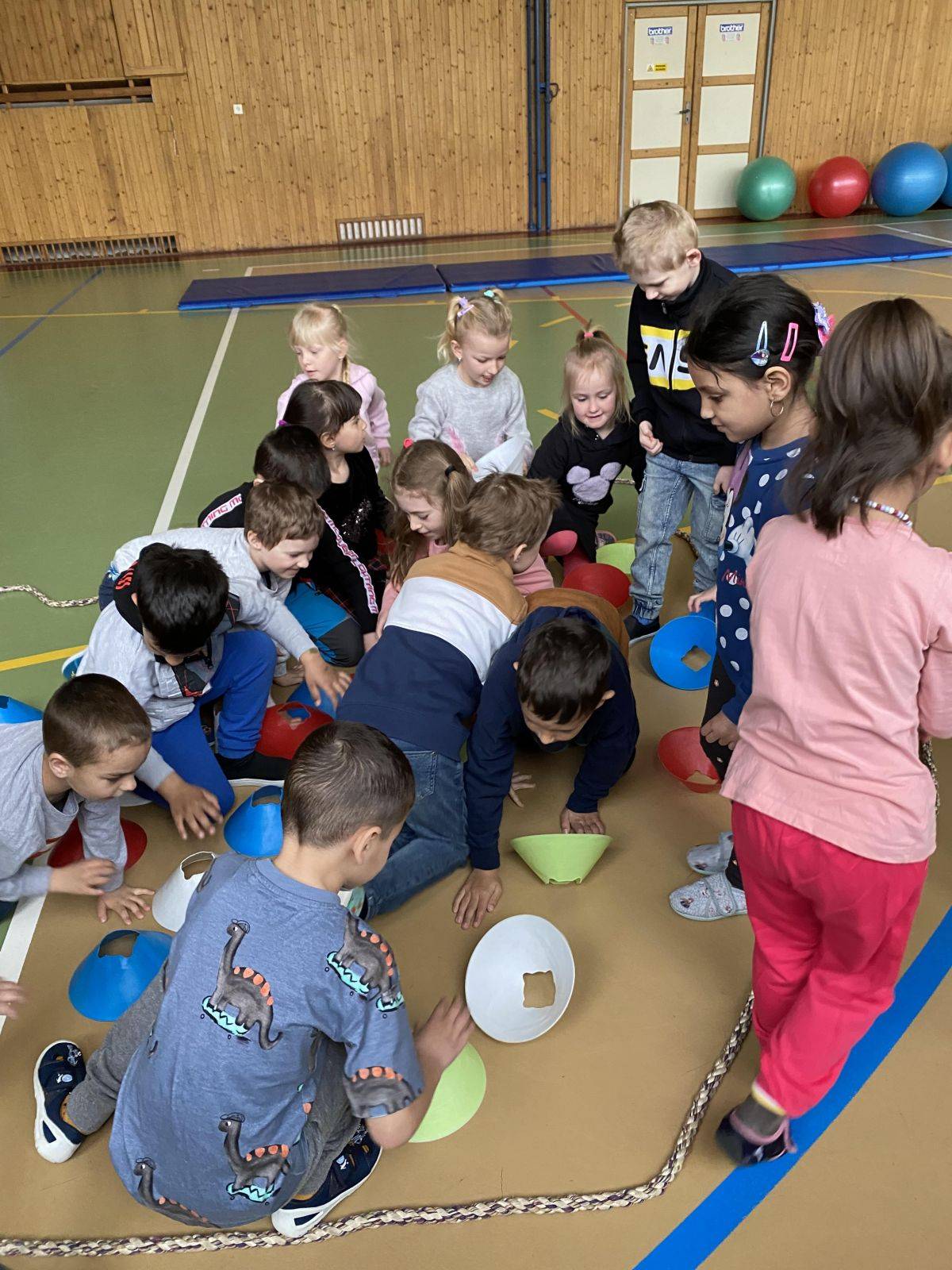 Poté se odebrali do tělocvičny, kde si pro ně připravili žáci 5. třídy překážkovou dráhu.