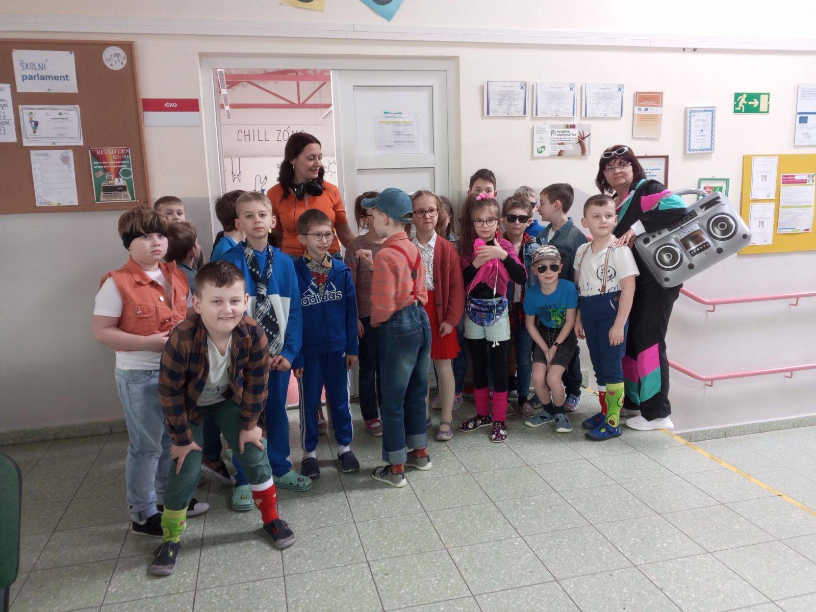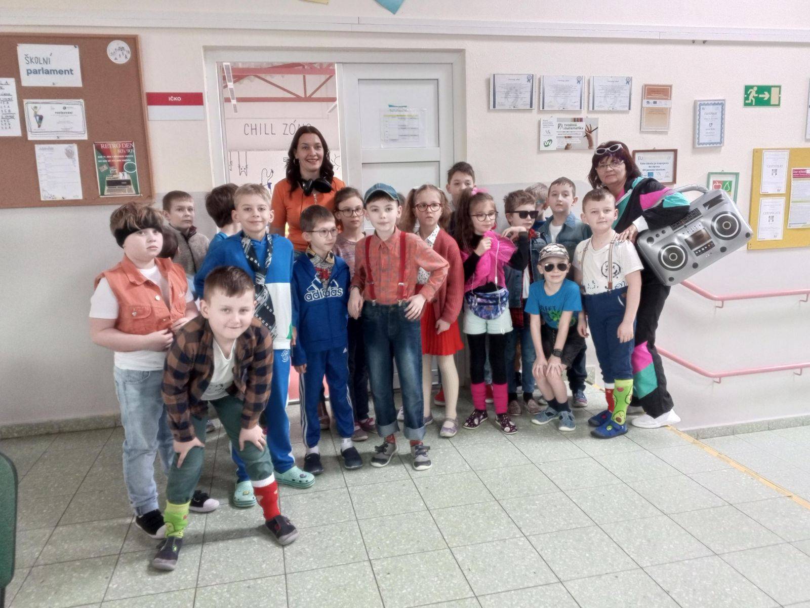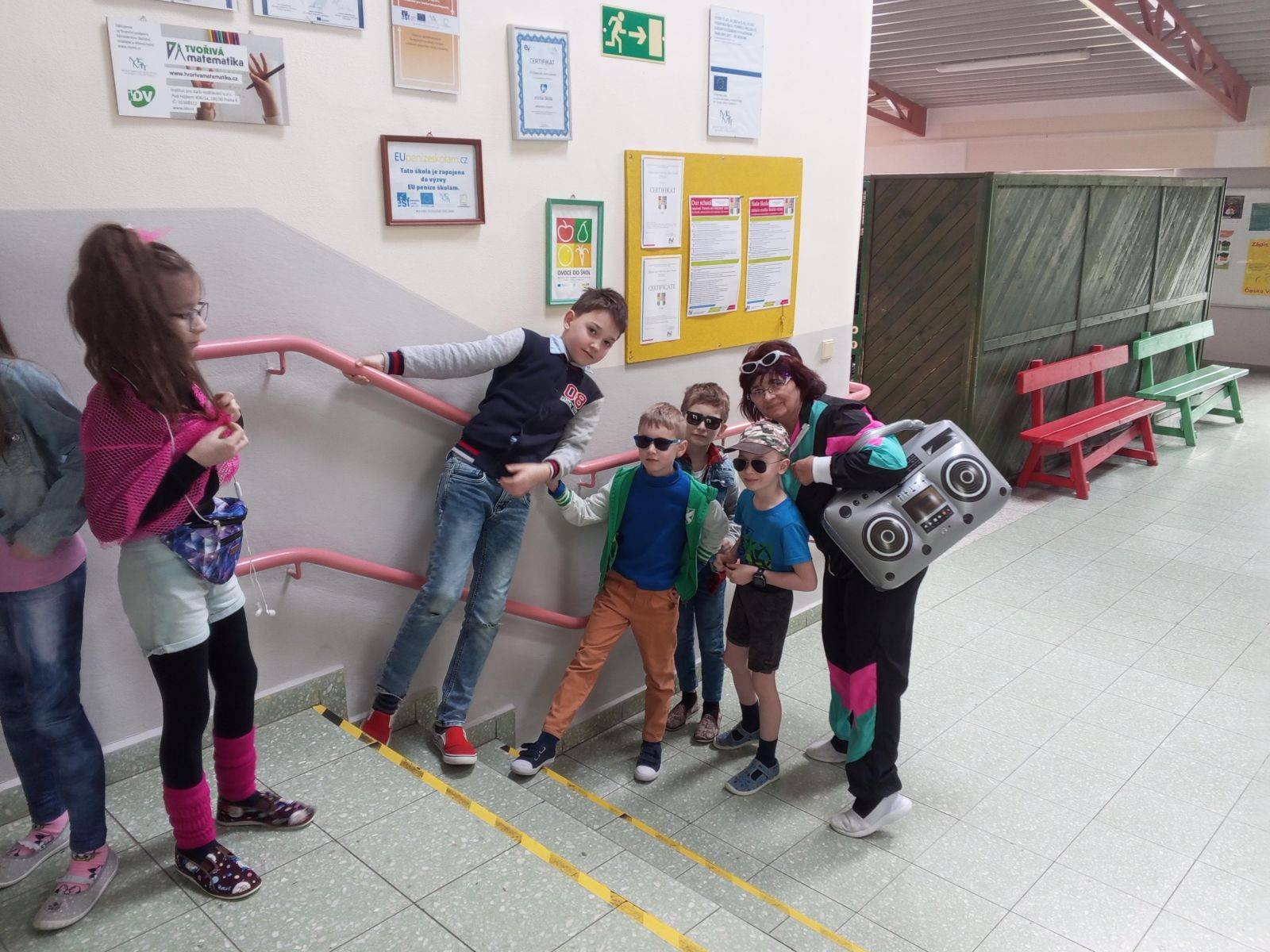 Pátek 15. byl dnem Off-line aktivit a her, které ovládly naší školu. Jídelnou se nesla hudba 80', stylové bylo i oblečení.Děkujeme všem, kteří se zapojili, rodičům za pečlivou domácí přípravu žactva.
