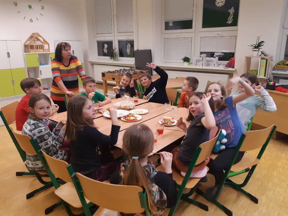 Po večeři si ještě povídali a vyprávěli vtipy. Před spaním se podívali na pohádku na dobrou noc. V sobotu ráno po snídani společně vše uklidili a plní dojmů a zážitků odcházeli domů.