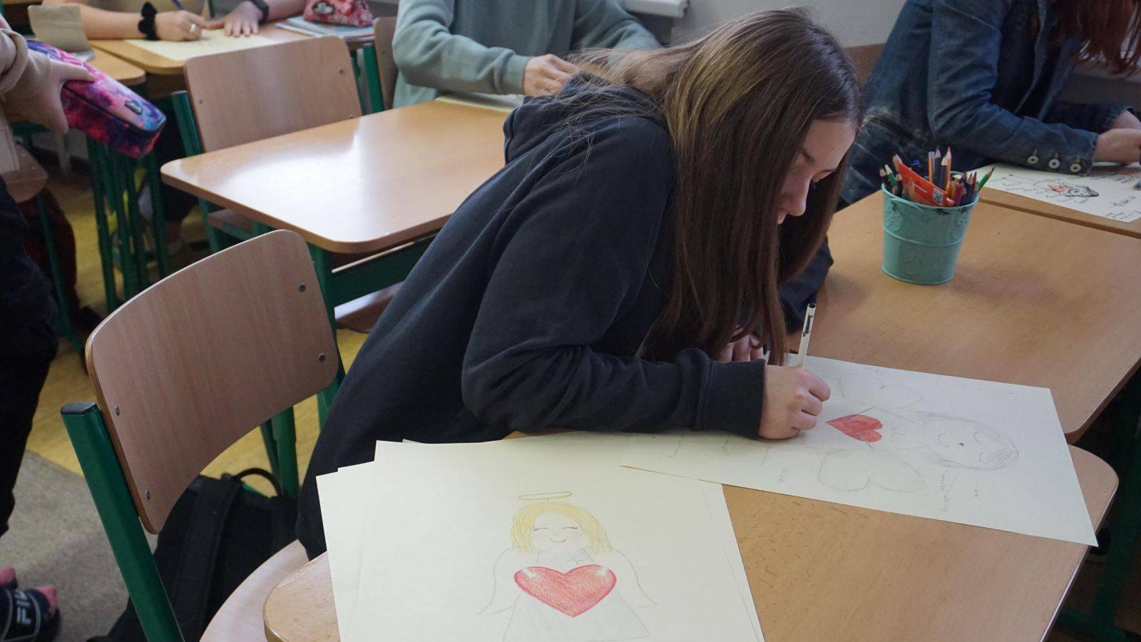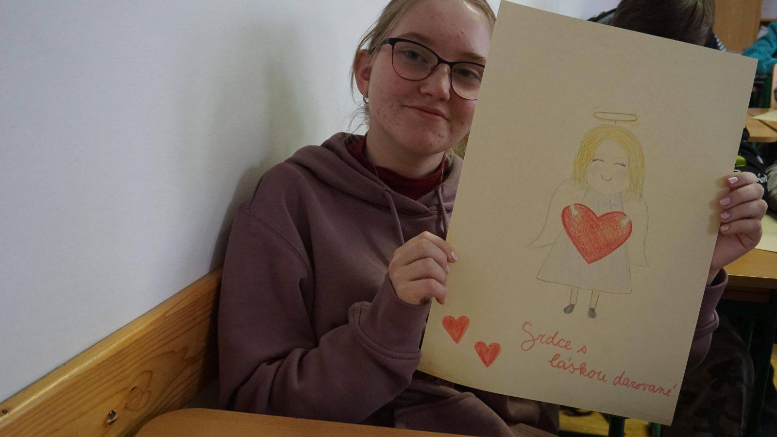 Žáci 8. C se připojili a darovali svá srdce, anděly a skřítky internímu oddělení naší nemocnice jako poděkování za jejich péči.