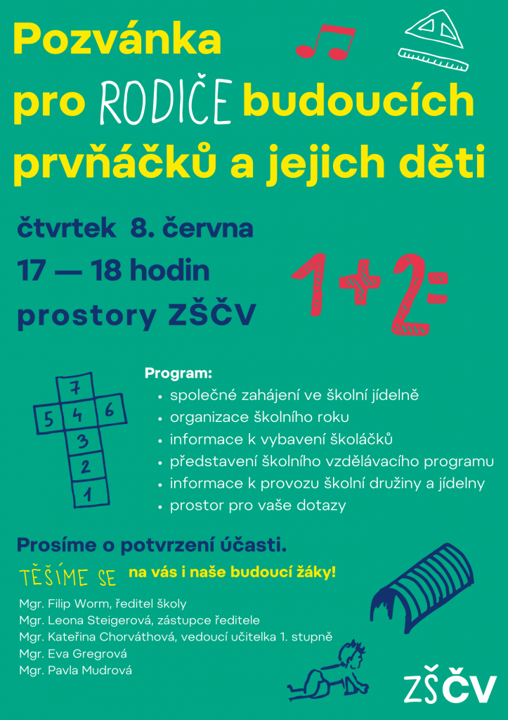 Budu PRVNÁČEK02.06.2023Pozvánka pro rodiče budoucích prvnáčků a jejich děti - pro ty je zajištěn program :)