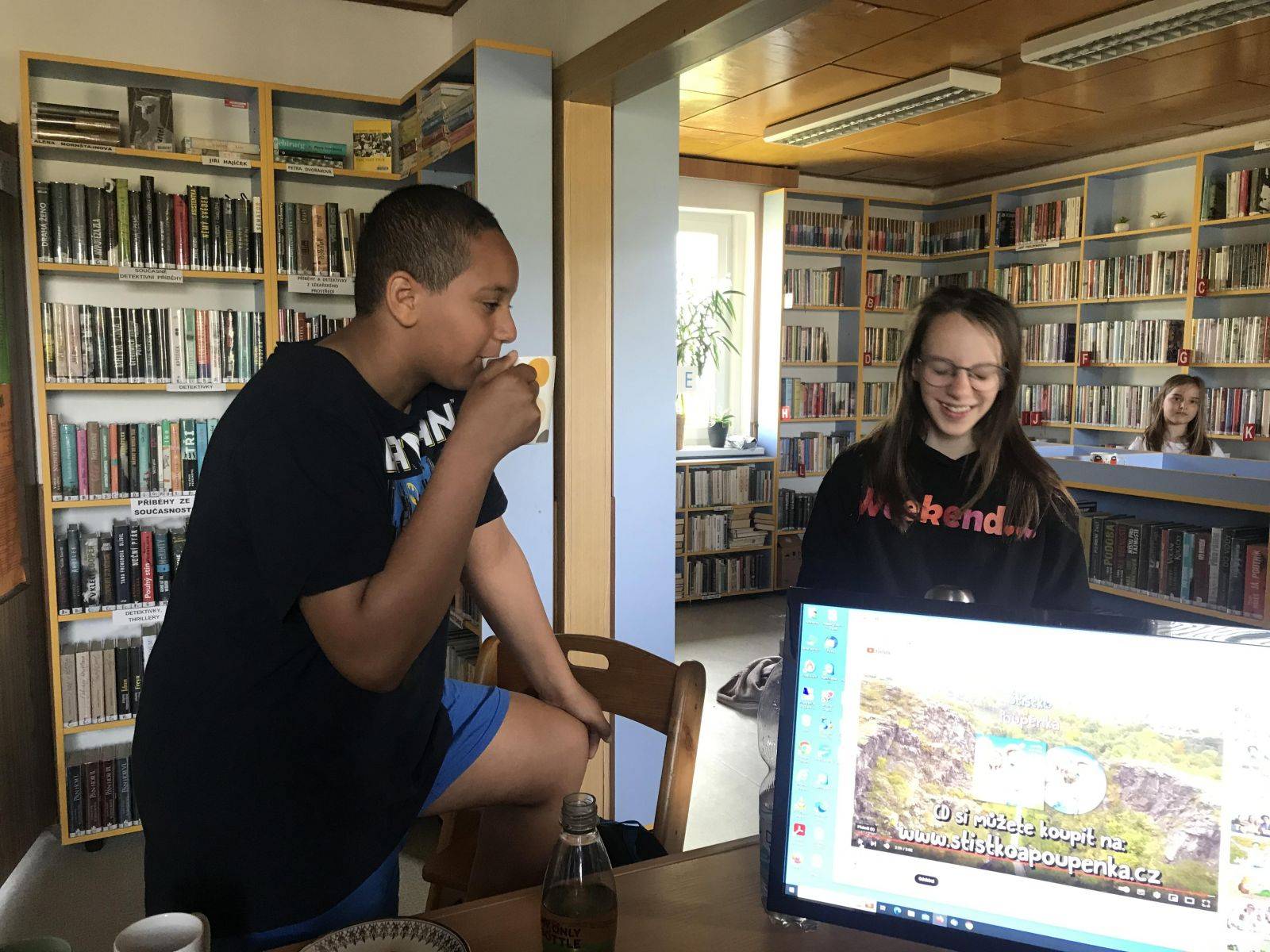 V obecní knihovně, v pátek 26.5., se konalo další nocování čtenářského kroužku Knihožrouti na téma UFO. Každý si nakreslil svého ufounka, vyzkoušeli jsme si komunikaci s neznámými tvory, ochutnali jsme dobroty z ufounkovy domovské planety, zahráli jsme si ufounskou hru v kostky a nakonec jsme vyslali vzkaz pro přistání. Ovšem třešinkou na dortíku byla následující ráno ufokytka pro každého nocležníka - pozdrav od mimozemšťanů?