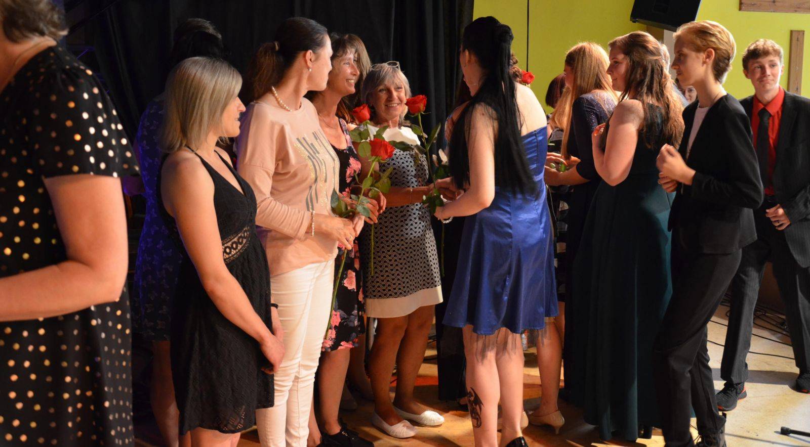 Žáci si pro přítomné pedagogy připravili krásný program. Rozdávali květiny a diplomy ve kterých ocenili pedagogickou práci, poděkovali všem kteří se o ně po dobu studia starali. Pro vedení školy si připravili ožehavý quiz plný nevšedních hádanek, při kterém si všichni báječně pobavili.