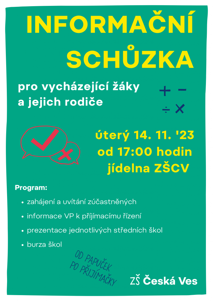 INFORMAČNÍ SCHŮZKA pro vycházející žáky a jejich rodiče06.11.2023Informace k příjímacímu řízení, BURZA ŠKOL