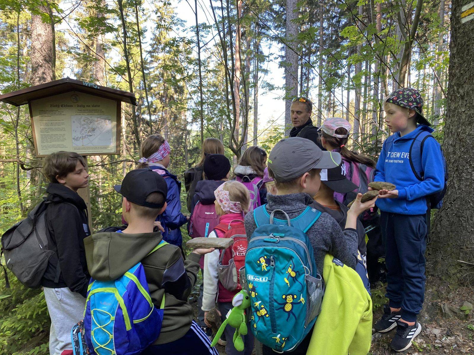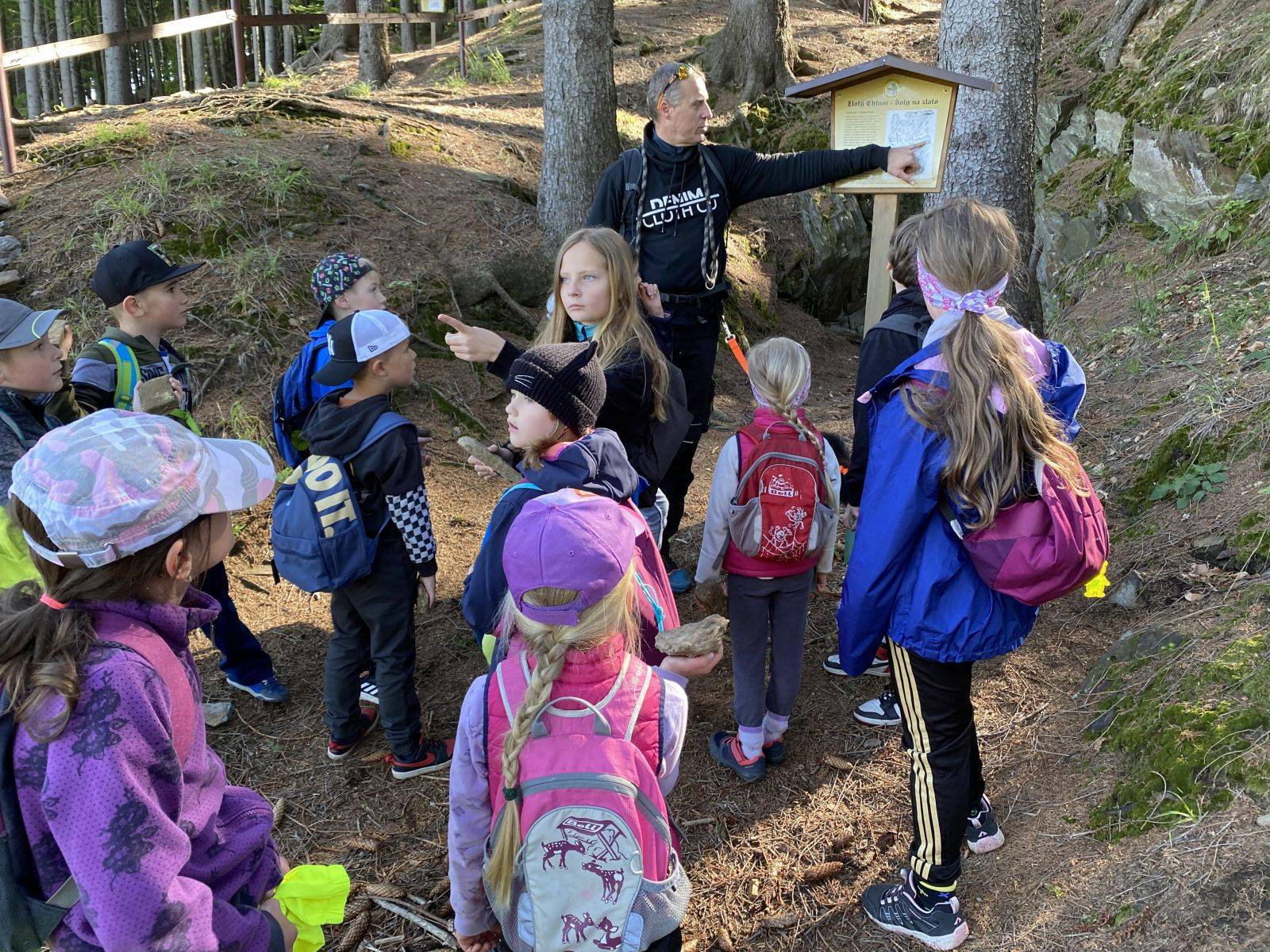 S dětim jsme navštívili Zapomenutý pramen, štoly, ve kterých se dříve těžilo zlato a žáci si mohli vyzkoušet hledání granátů (což jsou malé červené kamínky). Podívali jsme se i ke skalám. Touto cestou bych panu Janasovi rádi poděkovali za ochotu a čas, který nám vždy věnuje.
