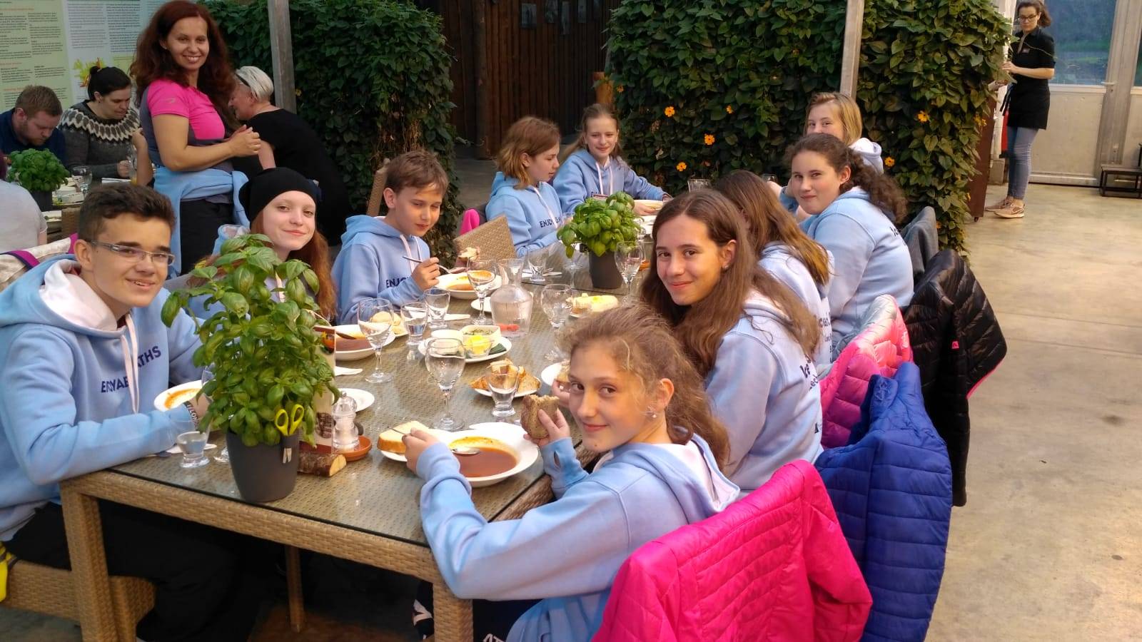 Každý si našel svého nového kamaráda a jelo se k nim domů, kde nás srdečně přivítali a ukázali nám náš pokoj. Další den byl volný ve svých „nových“ rodinách. V pondělí jsme se všechny 4 země (Island, Španělsko, Itálie a ČR) potkaly v islandské škole, kde jsme všichni hráli různé seznamovací hry a užili si společně první krásné zážitky. A odpoledne jsme mohli být doma s rodinou nebo jít do termálních bazénů. Další den jsme se znovu potkali ve škole a plnili jsme různé olympijské hry a úkoly. Také nám blíže představili jejich školní budovu. Další den jsme se opět potkali, ale jeli jsme na výlet. Naše první zastávka byla u sopečného kráteru. Potom jsme viděli horké prameny, (které mohli mít 70 až 100 °C) a okurkovou farmu. Večer už byl jen volný program v rodině. Další den – čtvrtek – jsme měli sraz jako obvykle ve škole, kde jsme hráli různé matematické hry, na kterých je tento projekt založen. Odpoledne v 5 hodin jsme se přišli rozloučit a trochu se pobavit na pizza party.