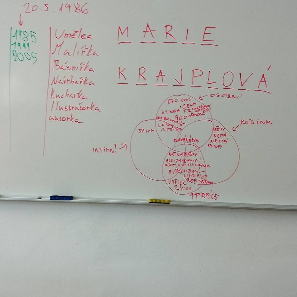 Se splněním úkolu vám poradí Marie Krajplová, intermediální umělkyně, režisérka a scenáristka, která se zabývá vlivem technologií na utváření lidského myšlení a vnímání světa. Hlavním tématem její tvorby je technický a technologický obraz pod vlivem své doby a popularizace vědy.*