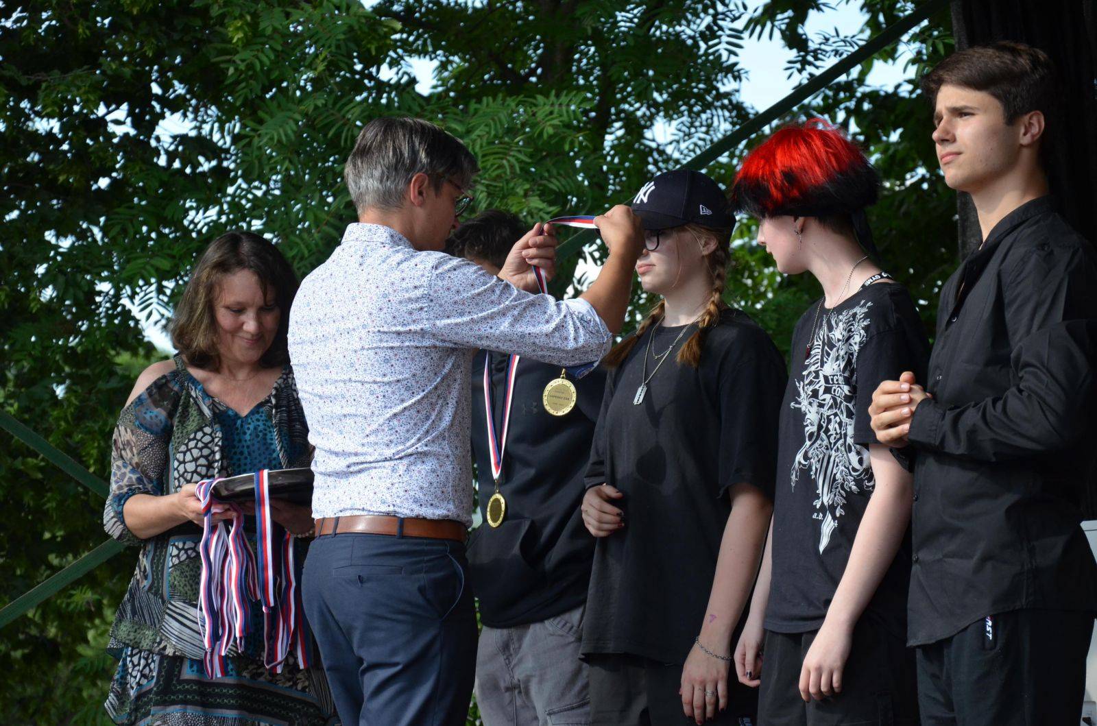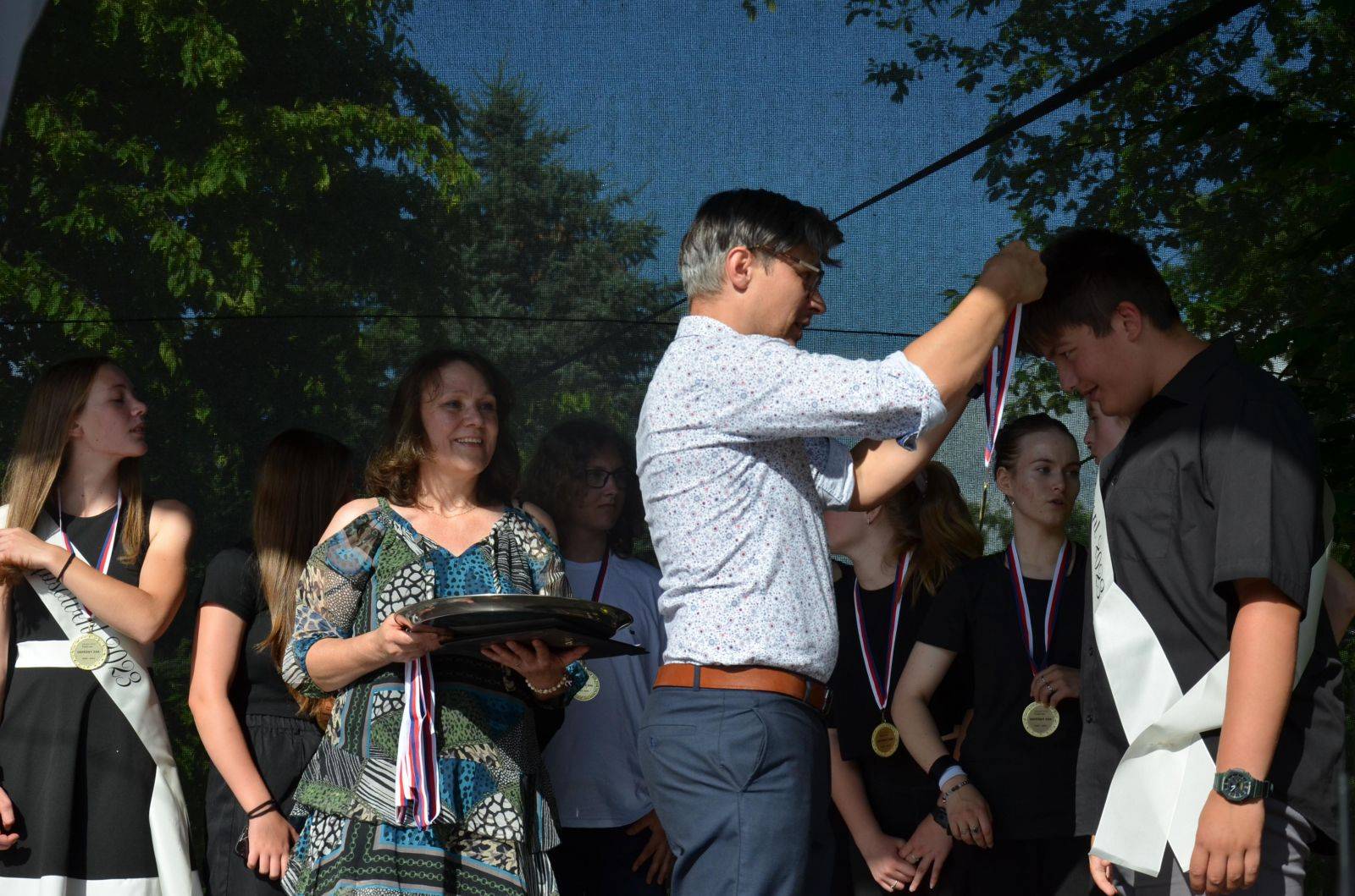Veřejné ocenění a poděkování žákům , kteří reprezentovali naši školu v nejrůznějších sportovních a vědomostních soutěžích , letos s novou kategorií "Skokan roku" pro žáky, kteří udělali kus práce pro sebe nebo své okolí.